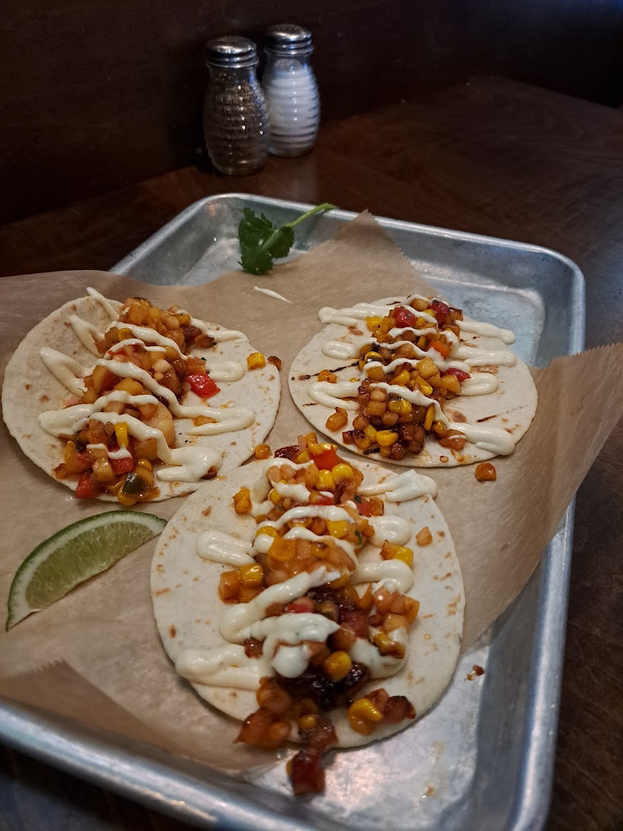 I had the goat cheese salad and sugarplum mule, my husband had the hall of fame lo mein with chicken, and we split the street gyros. The lo mein and salad were excellent, the gyros were good but nothing special. We went around 8:30pm and it was extremely loud. Unsure if it was just really crowded, if it was because we were near the bar, or maybe the location invites a more raucous clientele, but it was very hard to hear my husband or the server. The server let us know that dishes come out as they're ready but we ended up getting all three dishes at the same time, which was nice. Our server was nice although he disappeared for about 20 minutes at the end of our meal, right when we were ready for our check. Prices were reasonable and overall the food was very good, definitely worth a return visit.
