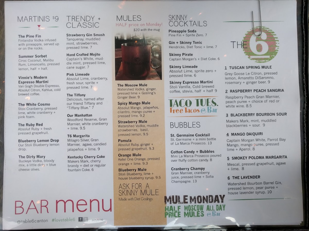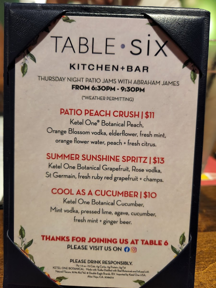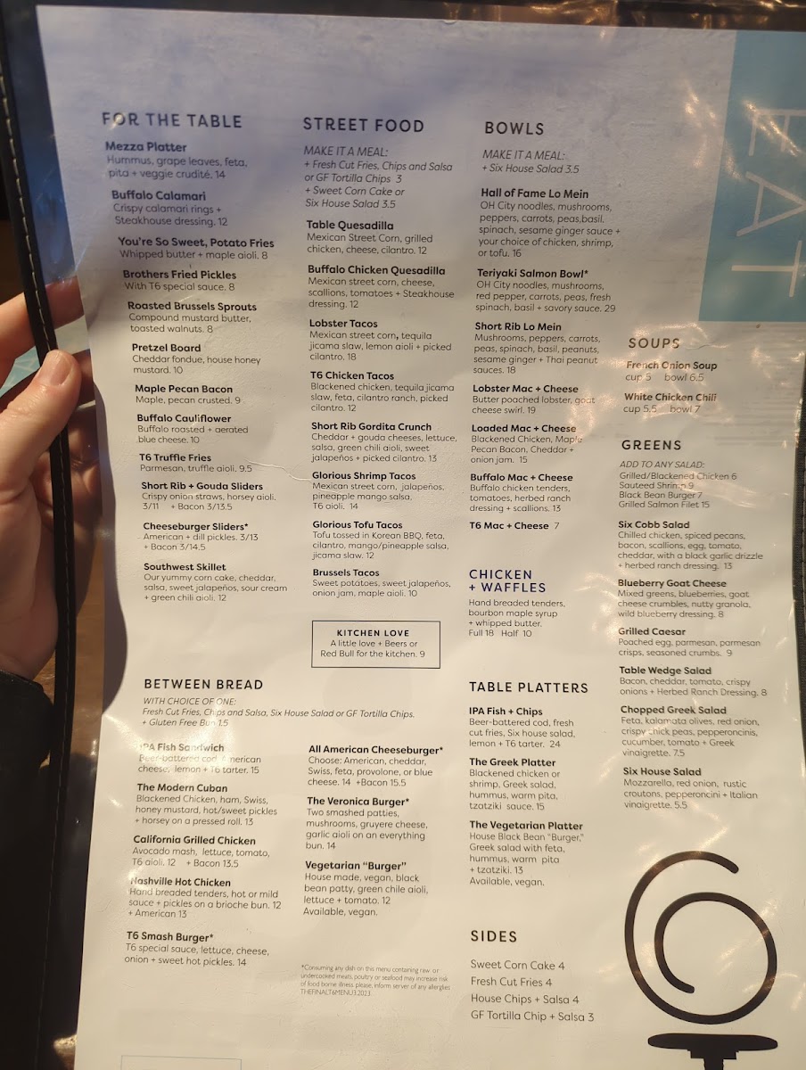 Table Six Kitchen + Bar Menu