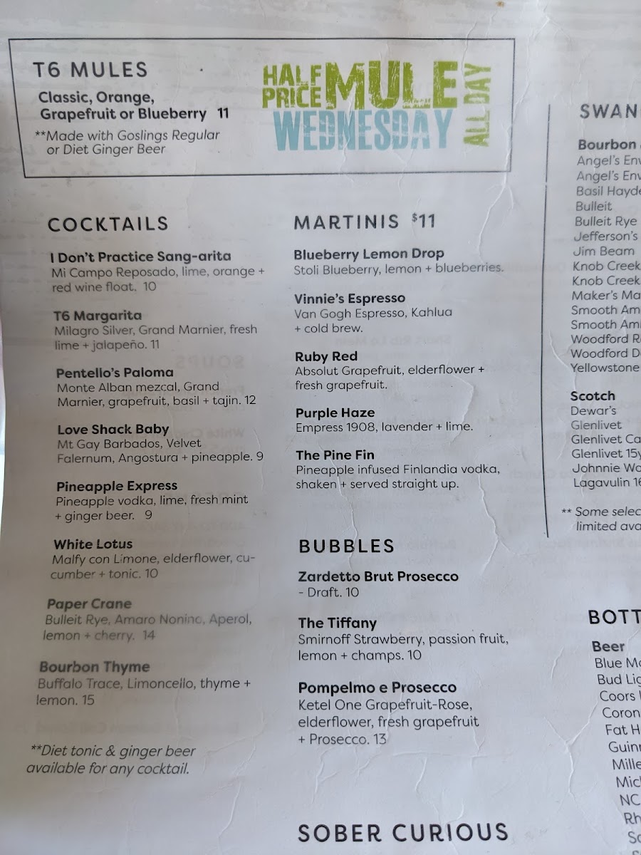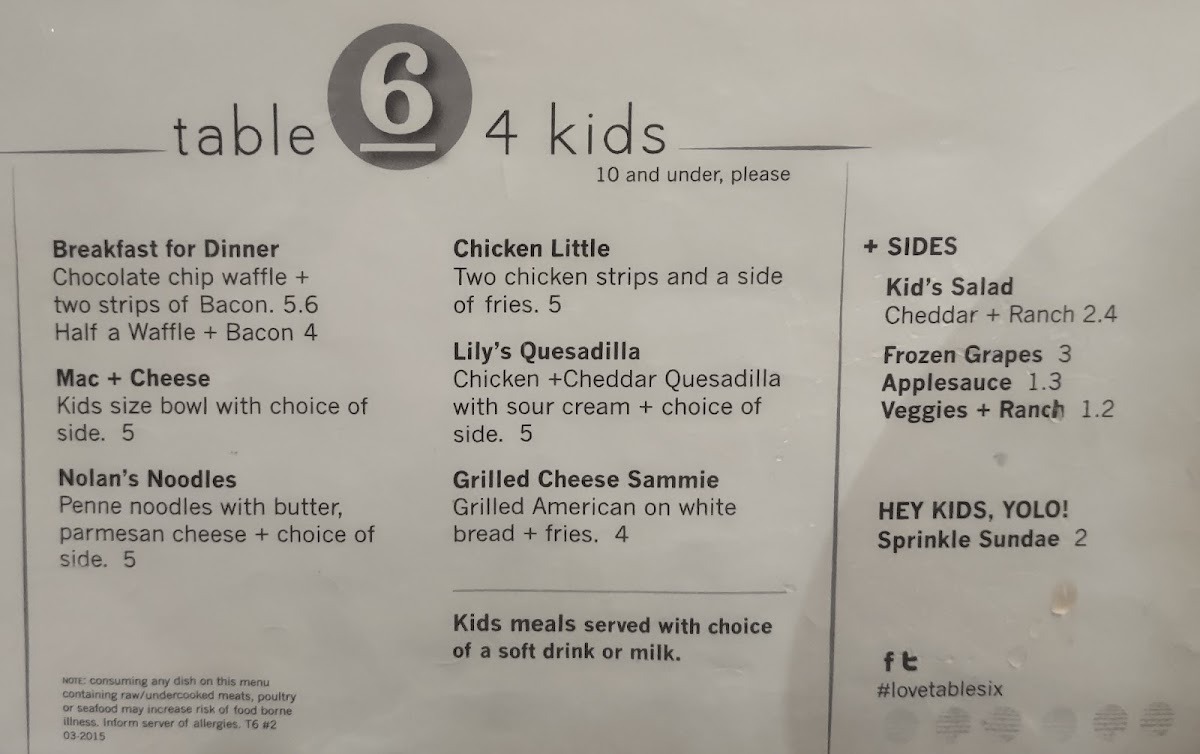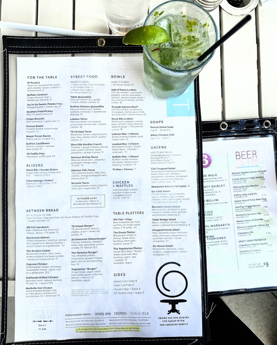Table Six Kitchen + Bar Menu